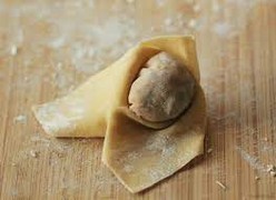 A tésztának szinte átlátszónak kell lenni. Kb. 7 cm átmérőjű köröket vagy négyszögeket vágunk ki. Meghintjük kukoricaliszttel. (Hűtőszekrényben, zsírpapírba csomagolva 24 óráig eláll. Ne hagyjuk kiszáradni, mert akkor főzés közben szétrepedezik.).